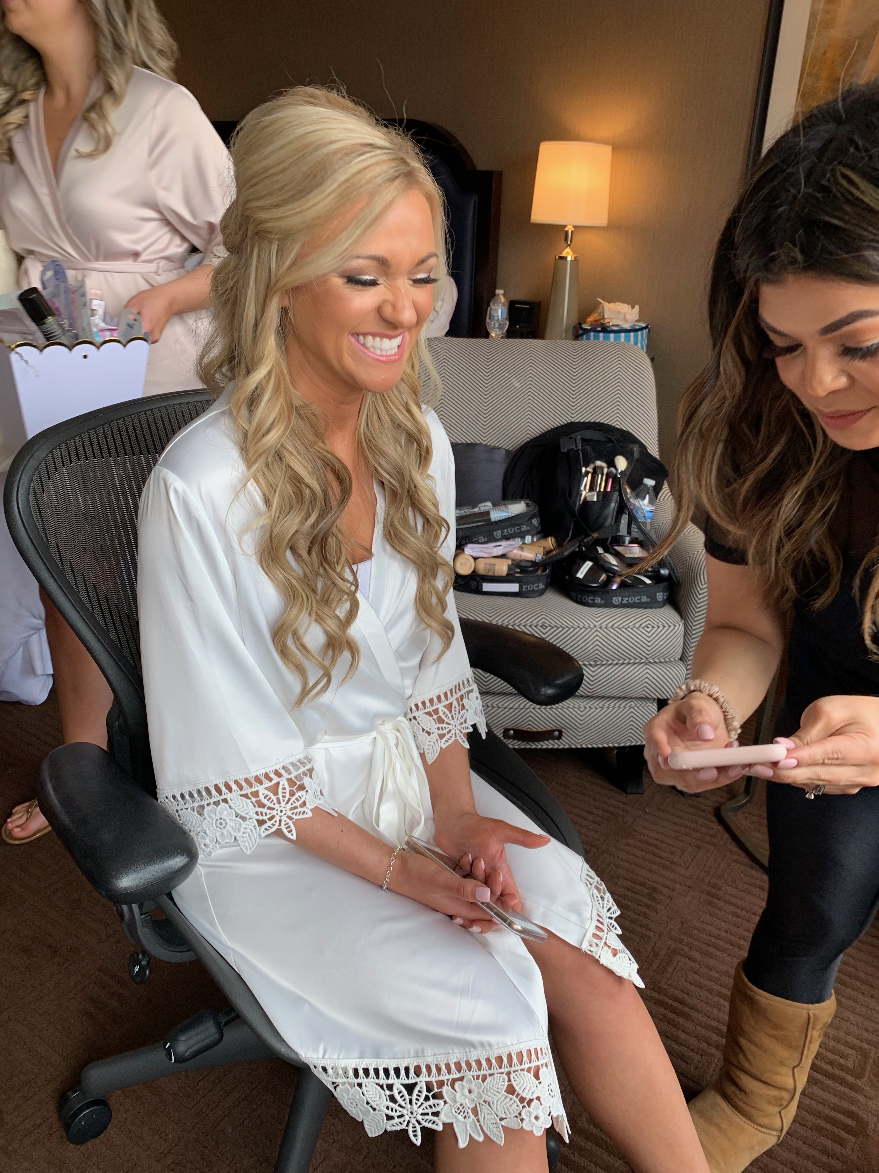 Thanks to Hannah Elizabeth Beauty I felt like the prettiest girl in the world!! When you book with Hannah Elizabeth Beauty they assign a makeup artist based on the location of your wedding. We had America come and do me and my girls makeup and everyone was so happy with her! You can check out Hannah Elizabeth Beauty on Instagram @hannahelisabethbeauty or you can visit their website at hannahelisabethbeauty.com